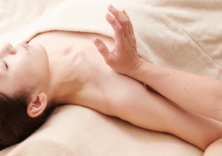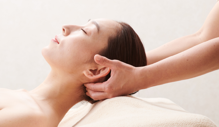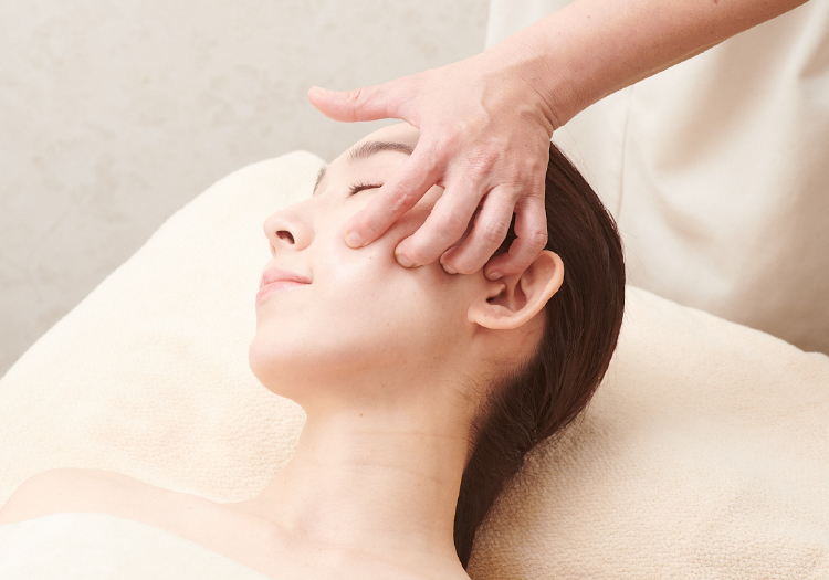 顔と頭の骨格の位置を整え、小顔に導きます。携帯の長時間利用、食いしばりなどの習慣によって筋肉が硬化し、骨まで引っぱってしまうことにより崩したバランスを丁寧な手技によってほぐし、ゆるめ、整えていきます。