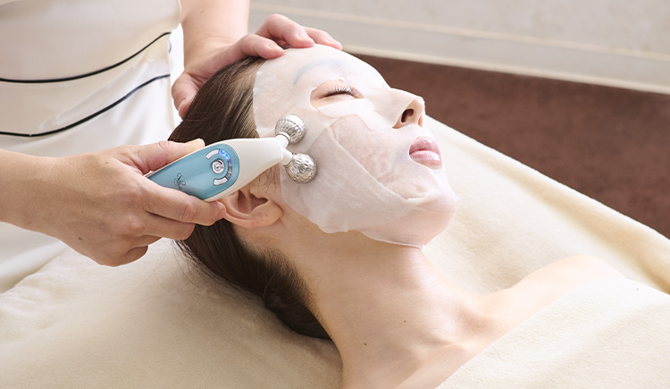 EMSのツインローラー美容機器で顔、首、肩のコリを深部からほぐし、しなやかで動きのよい筋状態をめざすスペシャルコースです。電気刺激によって筋肉の動きを感じることも。全顔の美肌集中パックをしながらのリッチな施術を受けた後は、すっきりと軽くなったような感覚を実感いただけます。